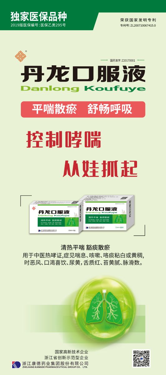 康德藥業(yè)是一家集藥品研發(fā)、生產(chǎn)和銷售于一體的國家高新技術(shù)企業(yè),秉承“健康至上,立德為民”的企業(yè)宗旨,一直致力于兒童創(chuàng)新藥物研究開發(fā),成果顯著。國家醫(yī)保專利產(chǎn)品丹龍口服液是我國實(shí)行藥品上市許可持有人制度(MAH)后首個(gè)獲批上市的創(chuàng)新中成藥,在傳承中醫(yī)精華的基礎(chǔ)上,提出“氣血同治,暢通氣道”的創(chuàng)新中醫(yī)治療理論,產(chǎn)品在宣降肺氣、止咳平喘對(duì)癥治療基礎(chǔ)上,注重清痰、化瘀、祛邪,具有活血化瘀、宣降肺氣、清熱化痰、解除痙攣、調(diào)暢氣道、止咳平喘等功效,為成人及兒童哮喘病患者提供全新的安全有效治療方案。